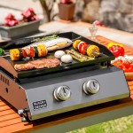Plancha de gas con 2 quemadores tubulares de acero inoxidable, cada uno con una potencia de 2,45 kw. incorpora encendido automático y un recipiente recoge grasa. superficie de cocción de 580 x 360 mm con recubrimiento de esmalte porcelánico, resistencia a altas temperaturas y una distribución homogénea del calor. panel frontal de acero inoxidable ss 430. patas ajustables que permiten una instalación estable en cualquier superficie. placa de acero de 2,5 mm de grosor. dispone de quemadores regulables