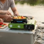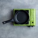 Cocina a gas portátil para uso en exterior. compatible con gas: cartucho butano en417 tipo msf-1a. con toma externa propano g-31/butano g-30. potencia 2,3 kw. sensor de presión y dispositivo de seguridad de ajuste del cartucho. regulador de llama variable. fácil de limpiar: bandeja de goteo esmaltada desmontable. incluye maletín de transporte. color: verde