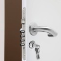 Cerradura embutir cre07 para cilindro de perfil europeo con leva larga (l15) y con 4 bulones de cierre para instalar en puertas de carpintería de madera, con canto redondo, resbalón reversible y nueca para cuadradillo de 8 mm esta cerradura tiene una distancia entre ejes de 85 mm y viene preparada con una entrada de 50 mm no incluye cilindro ni escudo incluye cerradero y tornillería fabricada en acero, acabado en níquel satinado