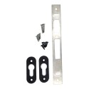 Cerradura embutir cre10 para cilindro de perfil europeo con leva larga (l15) para instalar en puertas de carpintería metálica con canto cuadrado, con gancho lámina, picaporte reversible y nueca para cuadradillo de 8 mm esta cerradura tiene una distancia entre ejes de 85 mm y viene preparada con una entrada de 20 mm no incluye cilindro incluye 2 protectores de escudo (plástico), cerradero y tornillería fabricada en acero inoxidable, acabado en inox