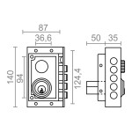 Cerradura de sobreponer crs01 con cilindro redondo para reforzar la seguridad mediante su instalación esta referencia no es reversible, siendo indicada para puertas de madera de mano izquierda el accionamiento interior se realiza mediante ruleta, mientras que el exterior se realiza mediante llave a través del cilindro incluye 3 llaves de serreta, palanca de cierre, lengüeta y tirador la llave en bruto para copias adicionales es la referencia 10875 fabricado en acero, acabado pintado en oro