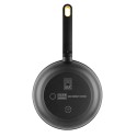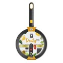 Sartén de aluminio fundido con antiadherente tricapa de gran calidad teflón innovation, libre de pfoa, apta para todas las fuentes de calor, fondo de gran espesor, mango negro de baquelita con insert de silicona en color amarillo para un agarre agradable y seguro, apta para lavavajillas, ø28 cm