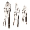 Juego de 3 alicates de presión que se compone de 1 ud alicates de presión de mordaza curva 180 mm 1 ud alicates de presión de mordaza curva 250 mm 1 ud alicates de presión de boca larga recta 225 mm, forjados al cromo vanadio, perilla ajustable, desbloqueo rápido
