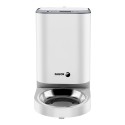 Comedero automático para mascotas. el dispensador puede distribuir comida a intervalos regulares y en cantidades fijas la bandeja de alimentación está diseñada para acomodar un máximo de 10-12 porciones de comida. cada porción es de aproximadamente 15 gramos. fácil configuración. se puede desmontar para una fácil limpieza. bol de acero inoxidable extraíble. en caso de un corte de energía, el alimentador pasará automáticamente a funcionar con baterías. capacidad del recipiente: 4 l / 2 kg, potencia: 3 w