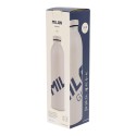 Botella con doble pared de acero inoxidable y aislamiento al vacío. conserva la temperatura de las bebidas calientes hasta 12 h y las bebidas frías hasta 24 h. con tapón de rosca hermético y junta de polipropileno. base de silicona antideslizante. capacidad: 0,946 l. medidas: ø8 x 30,7 cm. color beige y logotipo en azul marino