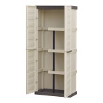 Armario alto con estantes y portaescobas línea spazio de polipropileno beige y marrón, 70 x 39 x 165 cm