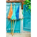 Parasol ø195 x 215 cm, color azul ribete verde agua, ajustable y plegable, tejido de poliéster y nailon con protección uv 30+, resistente al calor uv 400, repelente al agua. mástil de acero de ø28 - 32 mm. altura regulable hasta 215 cm, incluye bolsa de almacenaje