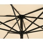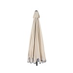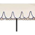 Parasol para jardín color beige ribete azul ø270 cm. con sistema de apertura por manivela, mástil de hierro ø38 mm color antracita, tejido 100% poliéster hidrófugo, protección uv 50+. estructura de hierro y polipropileno, varillas de 10 x 18 mm. altura regulable hasta 235 cm, base no incluida