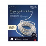 Cordón de luces 567 leds, luz cálida, 220 - 240 v 50/60 hz, exterior ip44, material pvc, con 8 funciones de efecto intermitente, incluyendo modo fijo, temporizador: 8 h encendido / 16 h apagado, clase energética g, cable de alimentación transparente de 5 m, largo total 14 m
