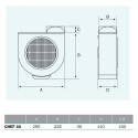 Extractor centrífugo para campana de cocina, chef 40 60 w, 220-240 v~50-60 hz, 1400 rpm, 350 m³/h carcasa metálica de alta resistencia, filtro antigrasa metálico lavable cable con toma schuko adaptador de salida para tubo de ø100 mm incluye tornillería 25,5 × 30,4 × 13,5 cm