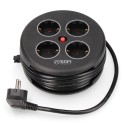 Enrollacables con 4 tomas 2p+t schuko, con protección, 16 a 250 v, cable h05vv-f 3g1,5mm² de 5 m, negro