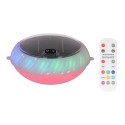 Luz solar flotante 20 leds, 70 lm, ip68, luz multicolor. 10 funciones, con múltiples efectos de cambio de color, con interruptor. batería incluida no reemplazable 3,7 v y panel solar 5,5 v, con control remoto. autonomía: 6 h aprox. material: fibra de vidrio, plástico, acrílico y metal. dimensiones: ø19,4 x 17,8 x 10 cm