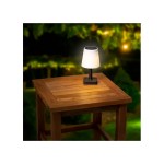 Lámpara solar de sobremesa, 2 w, luz blanca cálida, función fija, con interruptor batería 1,2 v incluida reemplazable 1 x aa ni-mh y panel solar 2 v autonomía 6 h aproximadamente material plástico color negra y blanca dimensiones: ø12 x 23 cm, base: 9 x 9 x 2 cm